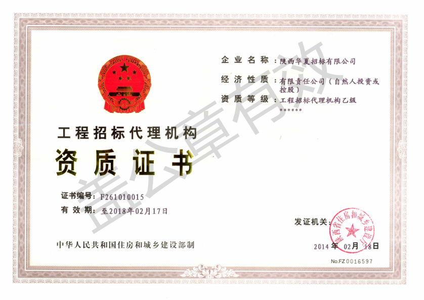 工程招標(biāo)代理機(jī)構(gòu)資質(zhì)證書